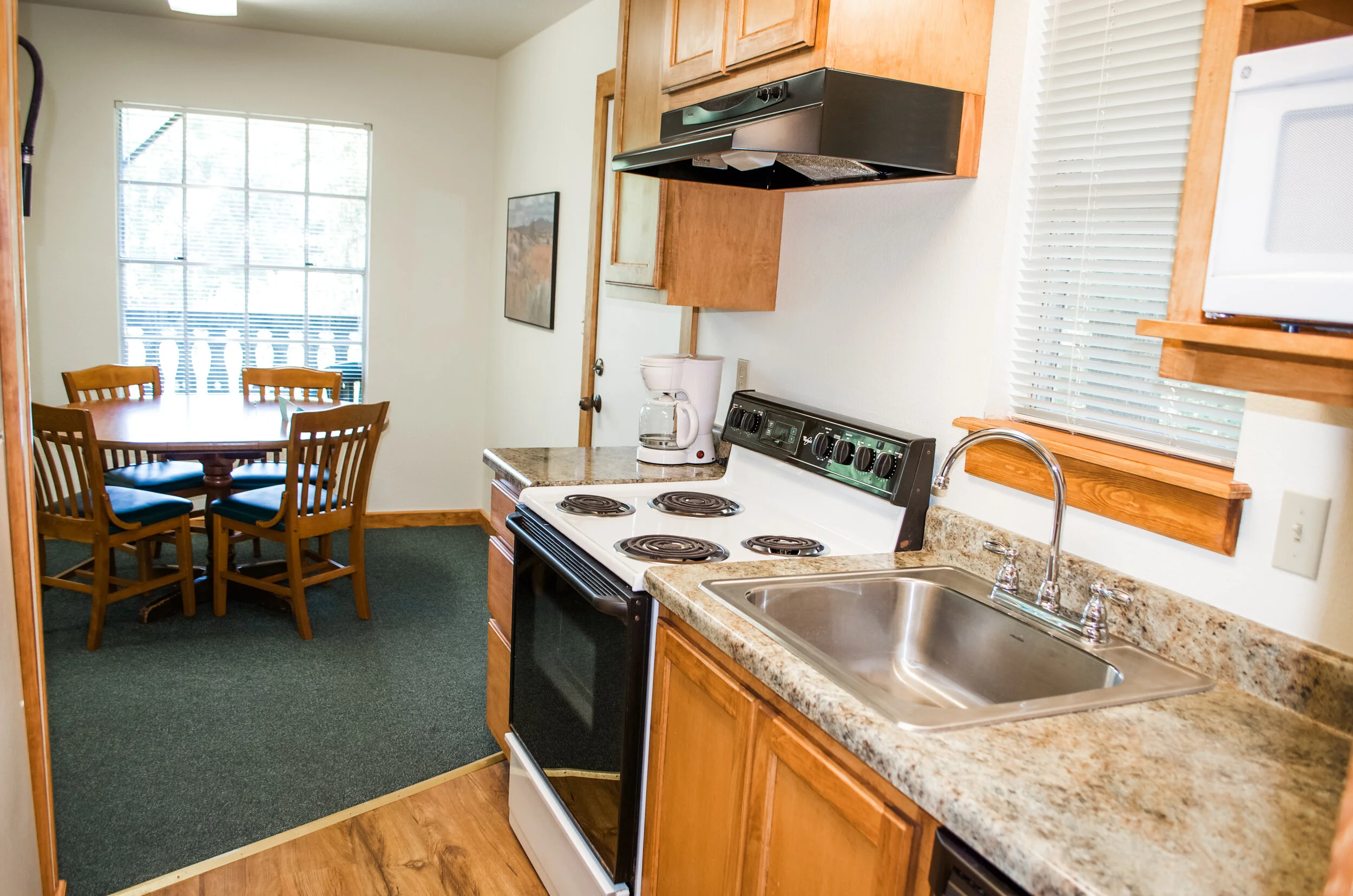 We do have a few units with similar floor plans that have 1-Queen bed (only 1 parking pass*) in the bedroom instead of the 2-doubles. These particular units have a full size futon in the living room. They are designed for 1 or 2 adults and 1 or 2 small children.